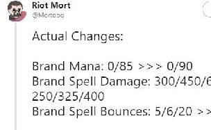 这个改动意味着即使布兰德阵容有4海洋羁绊,他依然需要额外的一下普攻才能满蓝施放技能,而且他的总伤害降低了17%左右,并且对更多的目标进行弹射,这对于单体目标的输出能力降低了。国服将于11月26日更新到9.23版本,因此,很有可能是热修复补丁上线后的版本了,游戏平衡性会变得更加合理。