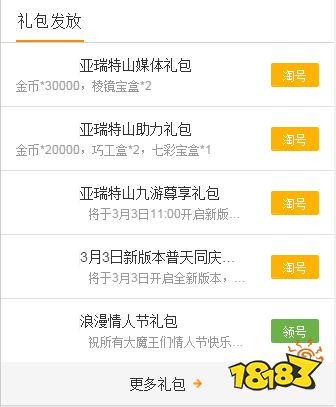 步骤2:登录专区首页,查看“礼包发放”的列表;