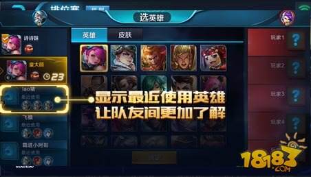 2. 我们增加了队友最近常用的三个英雄的显示,这可以在大部分情况下展示出自己方的队友选用英雄的倾向,避免玩家在禁和选英雄时候的冲突,当然玩家有权利关闭掉自己的常用英雄显示;