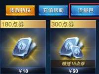 在点券购买界面,点击“流量包”按钮、即可唤起订购页面,在页面输入手机号,然后点击“立即订购”按钮,按照指示进行操作。