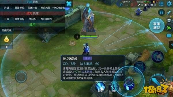解析:一技能是诸葛亮主要伤害技能之一。这个技能在对线清兵和瞬间爆发都特别强势。因为法球不会因为攻击到敌人而消失,而是 给路径上的所有敌人造成伤害,冷却时间也非常短。每颗法球都能触发1次谋略刻印,所以要一技能不要扔偏了。