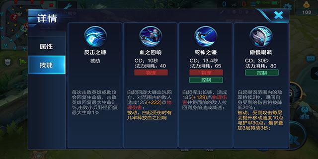 解析:这个技能是白起在团战中生存能力的保障,在自身生命值损耗的时候,不用立刻回城补给,在线上吃兵线同样能够回复血量。