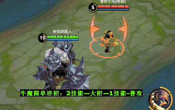 牛魔2技能后手释放可以提高命中技巧,此外亦可留着2技能来打断王昭君这类有大招的英雄,小规模团战尤为适用!