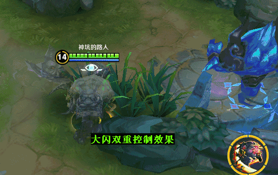记住:一定是要在斧头快砍下去的瞬间,放闪现,否则不会触发双重大招!