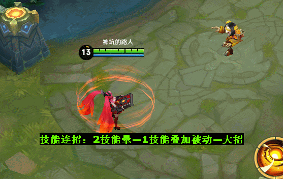 点评:安琪拉的核心技能,利用主动技能来快速叠加被动,从而做到秒杀敌人