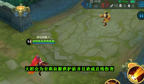点评:安琪拉的主要输出技能,可以通过方向键来控制输出位置!此外,安琪拉的护盾在特殊情况下可以用于保护自己!例如自身残血,对方刺客突然切入紧急情况下开大招可以防止被秒!又或者利用护盾的免控效果来躲开对方的一些强控!
