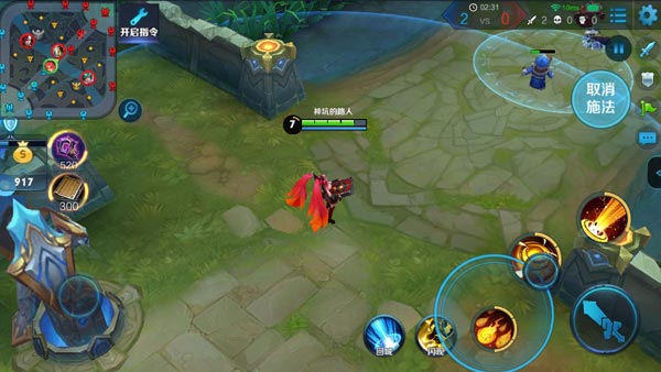注意:安琪拉的大招方向变换慢,对付近身敌人十分困难,所以要尽量避免单独行动,战斗时也要躲在后排进行输出