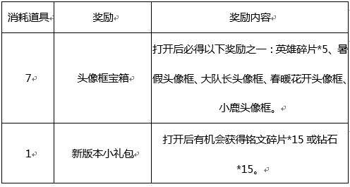 惊喜礼盒:打开后有机会获得以下奖励之一:钻石*666、英雄碎片*1、英雄碎片*2、钻石*10、铭文碎片*10。