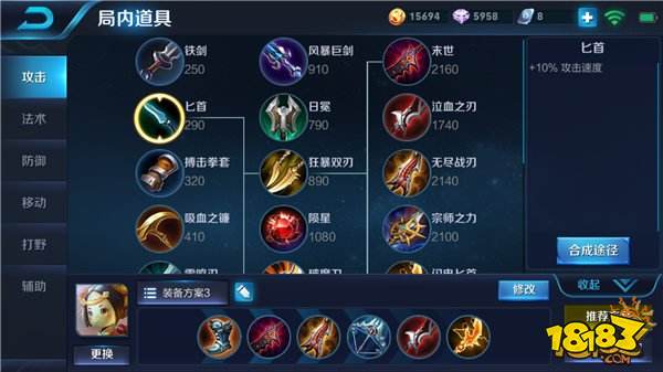 六神装:急速战靴、末世、无尽战刃、破甲弓、泣血之刃、闪电匕首