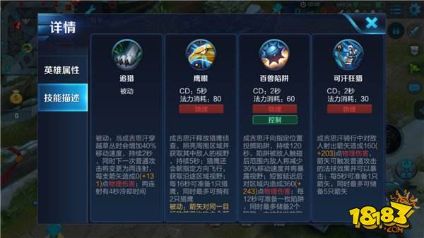 大招和普攻的配合是成吉思汗的主要输出方式,二技能作为陷阱能够帮助成吉思汗窥探敌人的视野,而一技能则可以随时查看周围草丛视野以及一条直线上的视野,可以说非常强大,这些都极大的保证了成吉思汗的生存能力。