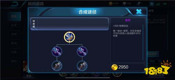 暗影战斧:是刺客类英雄前期必出的一件装备,这件装备的属性加成较为平滑,物理攻击、最大生命和冷却缩减等都有着不错的加成效果,令娜可露露中期的作战能力能有一个均衡地提升。