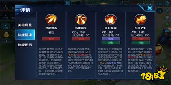 一技能是后羿的主要输出技能,大幅度增强了后羿的输出。需要注意的是一技能配合后羿的被动能额外造成高额伤害,最好后羿进入被动的时候再使用。