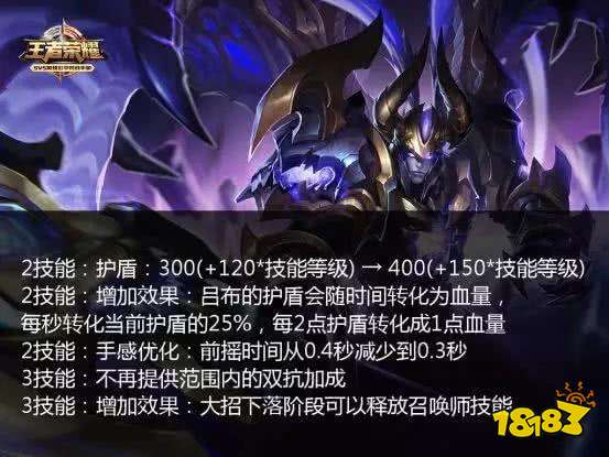 王者荣耀S12赛季很快就要降临了,在近期的体验服更新之前的边路一哥一姐们都受到了不同程度的削弱,而之前一直是压箱底的吕布却成了最大的受益者!其二技能的护盾厚度得到了大幅度的提升,并且在护盾消失前还可以很少的转化血量,作为上单抗压能力大幅度的提升,加上一技能的真实伤害,单挑能力直逼典韦。