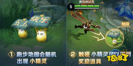 本次体验服更新后,王者峡谷游戏地图内会随机出现可爱的小精灵,触碰到它们,即可得到它们携带的道具,结算时更可直接获得所有收集的道具。