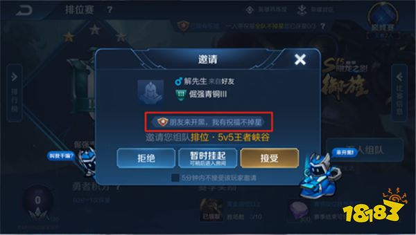 2. 4月6日当天,玩家多人组队参与排位时,只要队伍中有一个玩家拥有朋友祝福,该队伍均可享受祝福保星的效果,对局失败不会掉星;