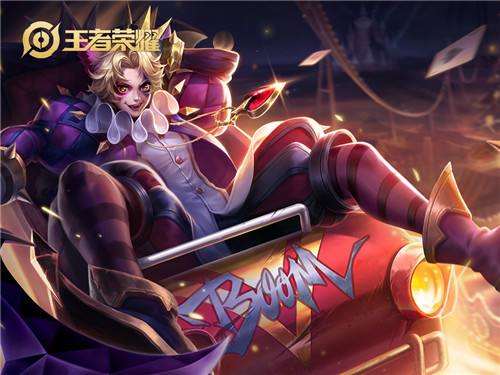 游乐园背景的伴生皮肤,姿势和白虎志还有原皮都不一样;造型应该是来源于小丑,设计得还是挺有创意的,不过没有什么特效,白虎志没出来之前用的比较多。