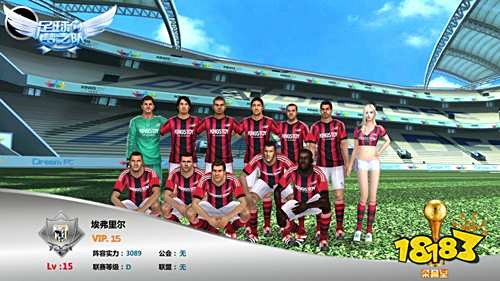 在球队界面,点击更衣室标签,你就可以进入神秘的更衣室看看了。更衣室男左女右,中间是球队标识,点击可以进入球队信息界面,查看球员合照、荣誉、阵型、综合实力等信息。