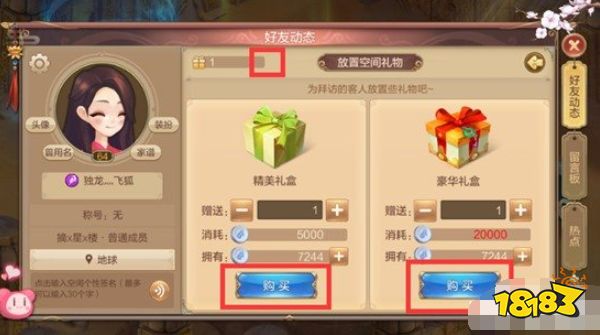 在空间主界面的上方,点击礼物图标旁边的【+】可以进入礼物购买界面,买了之后其他幻想家在你的空间点击【踩一踩】可以随机获得礼物,豪华礼盒获取的礼物价值更高。