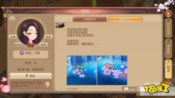 热点心情在自己的空间里会有【热】的标签,而且根据热点的点赞数量、评论等纬度,会排出本服热点和全服热点,如果自己的心情上了热点且排名靠前,每天中午将会收到提醒邮件,有机会上本周的人气值排行榜等哦。