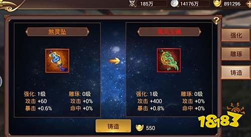 同样是在65级开放的还有“铸造”功能,玩家可以花费元宝在饰品页面将橙色饰品直接转换成红色饰品。