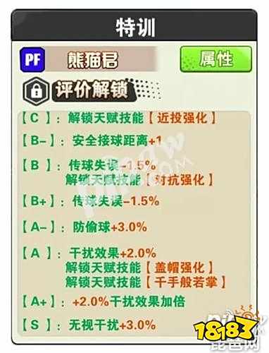 首先介绍熊猫君的核心能力:盖帽传球触发几率提升