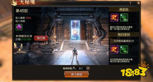 大秘境玩法是由一百多层连续的副本关卡组成的计时玩法。击杀副本boss即可通关该副本,系统将按照主公们通过副本的时间进行评分,根据评分决定主公在该副本能够获得何种奖励以及可以跳跃多少层进行新的挑战。大秘境玩法为单人副本,宠物和武将可以助阵出战,但是无法在副本内上下阵;副本内可以切换武器,但不可重新装配技能组。所以主公们在进入副本前,一定要选择最合适的技能和助战的武将与宠物哦!每次进入秘境挑战,都需要消耗一次秘境次数或者消耗一把秘境钥匙。每周在玩法进行排名结算时会免费获得3次秘境次数,同时主公们可消耗秘境钥匙进入大秘境,秘境钥匙可以通过商店购买或者参加后续活动获得。