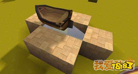 4、然后用桶先把水给装走,再把方块撸掉,这样一来船就会孤零零地在地上了;