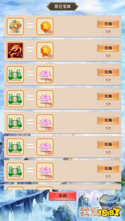 2、昆仑秘境兑换物品