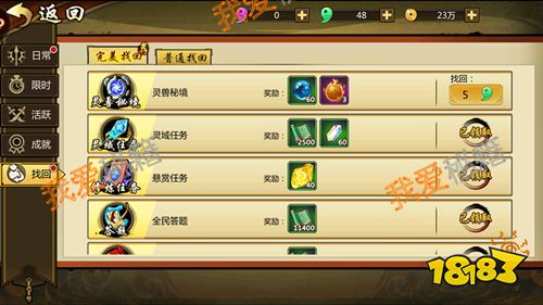诚然如上所说,限时活动错过了就错过了,有时候有些玩家连日常任务都不会做完。哎,官方考虑到了玩家的这一点,设定了找回玩法,就是将你前一天没有做完的人物以及奖励全部列举出来,你可以选择用金币或是魂玉来购买,算是另一种意义上的一键完成,不过魂玉是全额获得奖励,金币则只获得其中奖励的一半,大家不要搞错了哦。