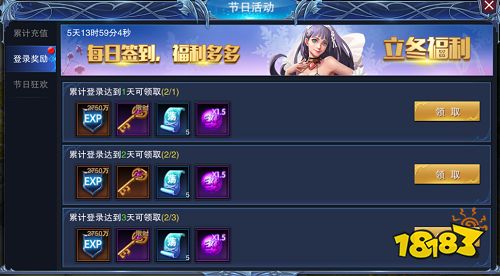 活动规则:活动期间,连续登录即可获得2750万经验值、世界BOSS钥匙、经验丹、扫荡符等辅助道具,最高可领取价值100RMB的节日礼包。