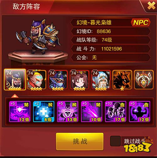 虽说只是幻象,但也拥有强悍的实力。《兽人三国》中的幻象与真人相似,同样能够上阵五个英雄,并自行搭配魔纹与战场魔纹,更有神灵助战,提供强大的辅助输出能力。知己知彼,百战不殆。我们可以先在“挑战”系统中查看幻象的属性,再针对性地组建最优阵容前往挑战,如此便能大大增加挑战的胜率!