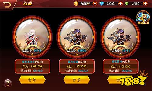 击杀幻象可以获得海量金币和钻石奖励,而每天可挑战幻象的次数不受限制。所以如果体力充沛,不妨多去探索副本,每一次探索都有一定几率触发隐藏挑战。当然,每一次的幻象挑战并不会都轻而易举。如果遇到棘手的对手,不妨通过“幻象查询”系统寻求亲朋好友的帮助,每一次帮助击杀都能获得钻石奖励,不容错过!