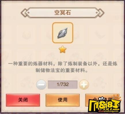 空冥石可在副本刷得,炼制储物法宝会需要大量空冥石。