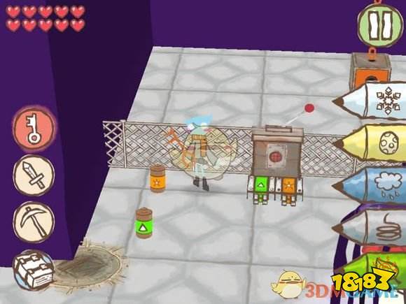 这里这个桶要放水,然后你会看到两个箱子,不要开棕色的(除非你想作死)开黄色的,之前说过什么颜色开什么颜色的钥匙。所以用黄色。可以先在四处走走,然后把所有钥匙的颜色画下来。因为Boss有时候会放出紫色的炸弹。尽量快点,在高处可以躲一下攻击。