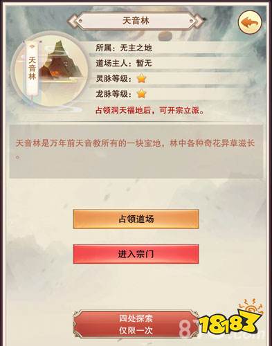 这个探索纯靠运气,小编的话在第六次探索的时候就找到了一个名为天音林的洞天福地。