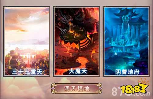 洞天福地的进入按钮在地图界面的三界入口下方。