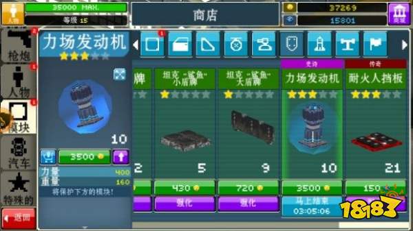 卖零件:玩家们都有很多不用的零件,找出这些零件,在商店里面有一个模块,就在左边,可以在这边找找,左边的列表上找到模块,点进去就有能卖零件的地方,商店这里不仅可以购买大家所需要战车零件,就连你不需要的零件也能在这里卖出去,卖掉之后你就会发现自己原来还是一土豪,钱会变得特别多。