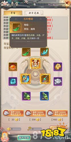 寻宝也是游戏中获得装备的一个途径,我们只需点击右上角的寻宝就能进入寻宝界面,在其中我们只要开启神秘宝盒,就有机会获得各种高级装备。
