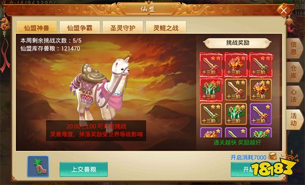 神兽来袭,神装任性掉!仙盟神兽是仙盟活动的一大重点玩法。同一仙盟成员共同喂养使神兽成长,召唤神兽并击杀之后可获得丰厚奖励。每天晚上盟主可以开启仙盟神兽的挑战,规定时间内成功击杀即可掉落海量红装,全仙盟成员同时享有。而击杀神兽的速度越快,掉落的红装数量越多,所以开启神兽挑战的时机便尤为重要!