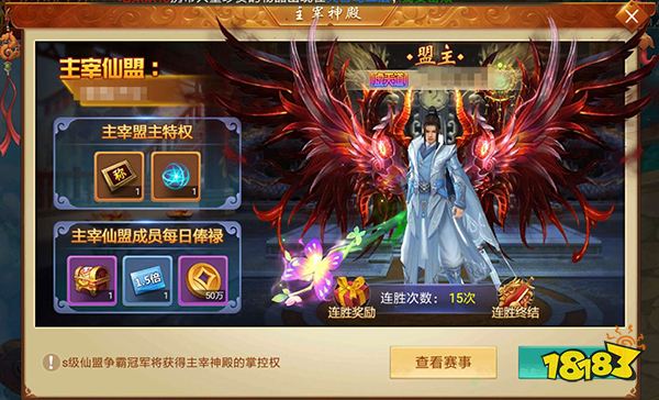 仙盟是正是一个团队,而仙盟争霸正是考验一个团队的最好时机。《剑逆八荒》仙盟争霸将于开服第四天及之后的每周日开启,第一次仙盟争霸根据仙盟战力的排行,分为神级、仙级、天级、地级、人级等5个赛区。仙盟争霸采取升降级制度,在每周的仙盟争霸结束后,每个赛区的最后一名将会降级到下个赛区(人级除外)。而神级赛区的冠军则获得主宰神殿资格,主宰神殿连胜一定次数则可以获得绝世神兵──剑破云霄的奖励!
