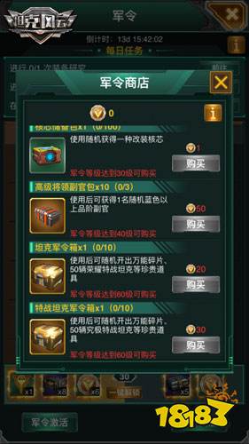 《坦克风云》军令系统即将上线,更多有利条件等你激活,千万不要错过哦。
