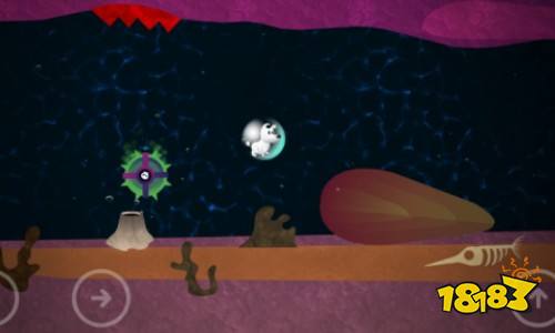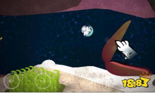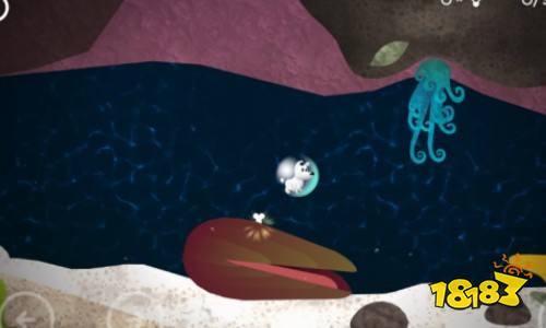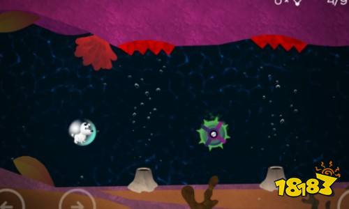 记住水下世界千万不能让气泡破掉,一般墙壁碰到一次会闪,第二次就会破,遇到尖刺会直接破掉, 米皮会无法呼吸。但是我们也不需要一直点击屏幕控制它向上,只要按住屏幕不动泡泡就会自动向上飘啦