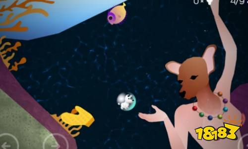 然后我们遇到了……嗯,美人鱼?算是吧,我们将手套先套在美人鱼的手上,然后我们就可以站上去了!这样就可以慢悠悠选择球颜色了,按照刚刚记住的颜色顺序,排列好,就可以打开通道,过去了