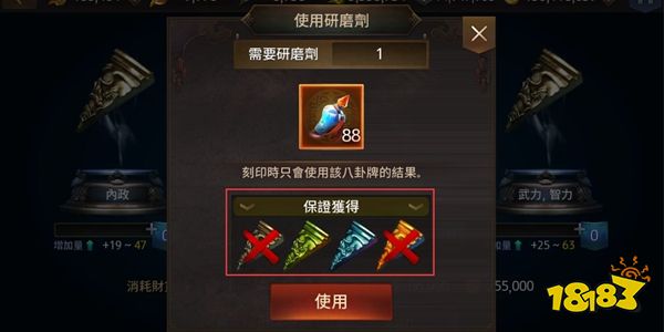 3、如对刻印出来的属性不满意,可以进行八卦牌复原+10.