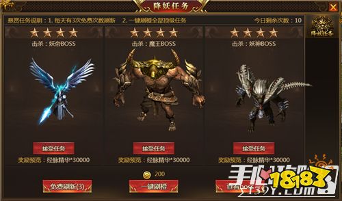 1.降妖任务是击杀BOSS的任务,每天可以完成10次