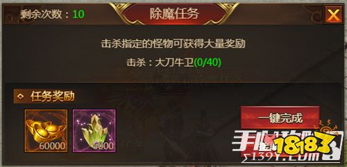 2.玩家可以嫌杀怪费时间可以选择一键完成,每天可以完成10次任务