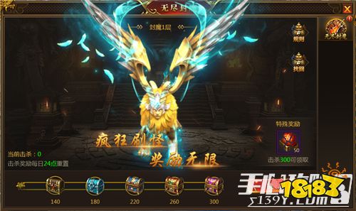 进入怪物巢穴,开启疯狂杀戮模式,享受刷怪的快感,随着击杀数的上升可以领取丰厚的奖励,vip玩家更有奖励加成。