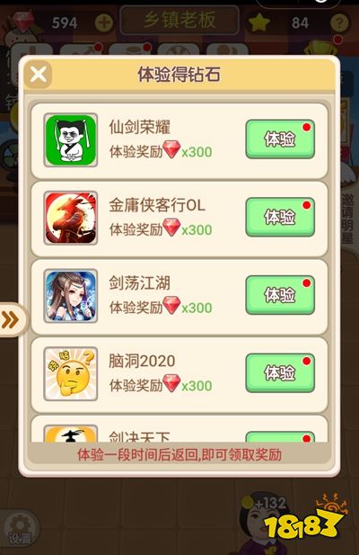 点击体验一段时间其他微信小游戏,返回后可以获得钻石奖励。