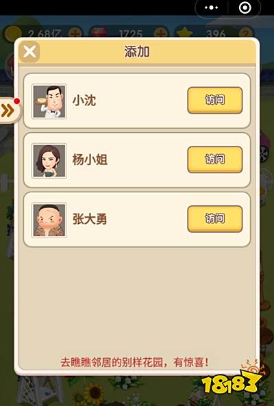 进入游戏好友的家园里访问,可以获得少量钻石收益。