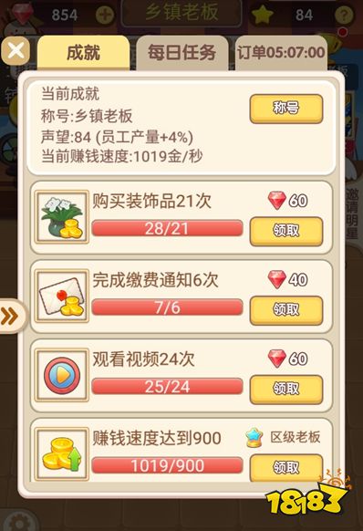 完成每日任务中的任务选项,可以获得金币与钻石的收益。
